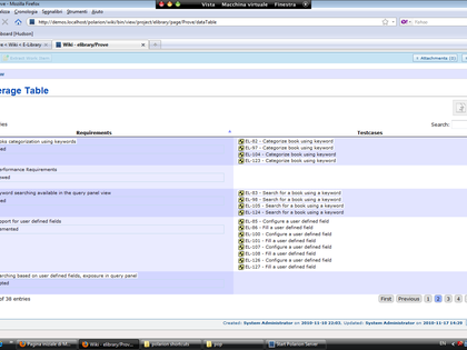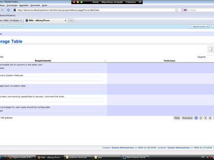 Interactive Wiki Tables provides wiki pages with interactive javascript tables features such as: pagination, searching, sorting, excel/csv/clipboard export, ajax and live insertion.. Very useful to improve the traceability tables usability