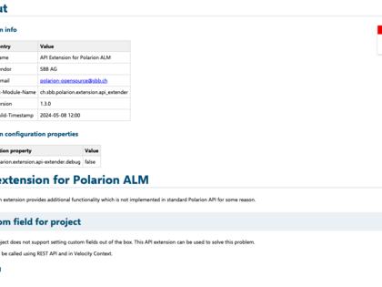 This API-Extender provides custom field support for Polarion Projects and on the global level.