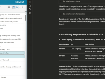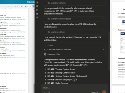 Use Polarion inside ChatGPT, Claude, and Cursor. Query requirements, analyze change impact, and write code, all without leaving your AI tool.